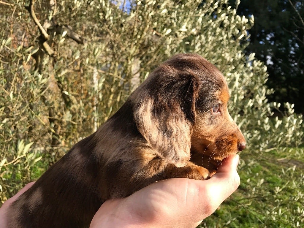 Que des petits formats (entre 153 et 169 gr à la naisance) et bien charpentés selon les standards du teckel.
